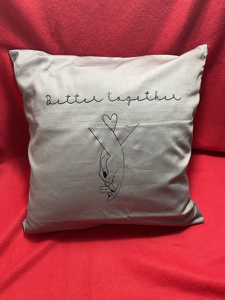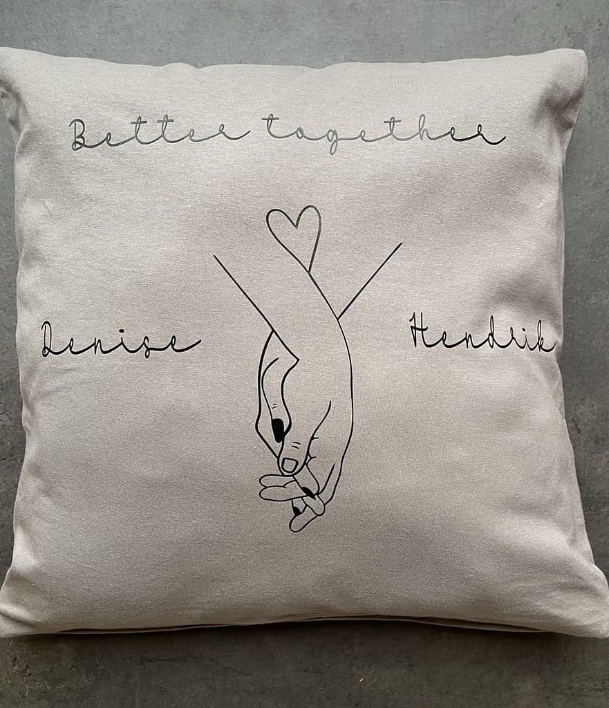 Ein sehr persönliches Geschenk ist dieser personalisierbare 40x40cm große Polster mit der Message BETTER TOGETHER.